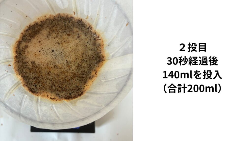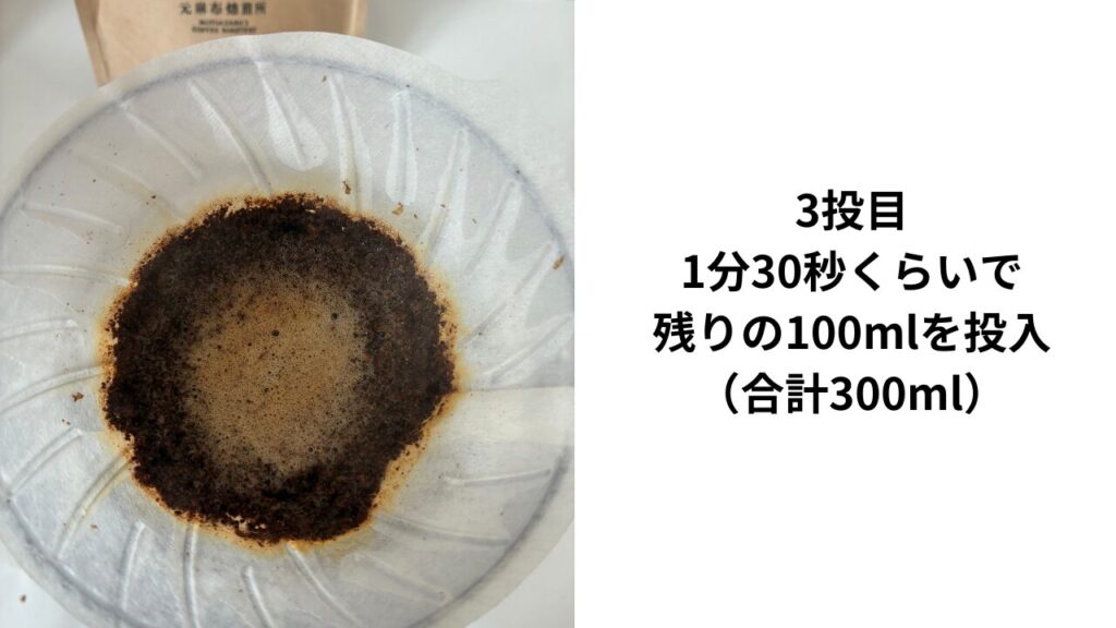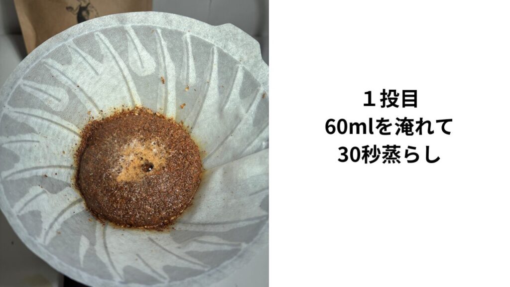 - 蒸らし(60ml)→ 200mlまで → 300mlまでの3投構成