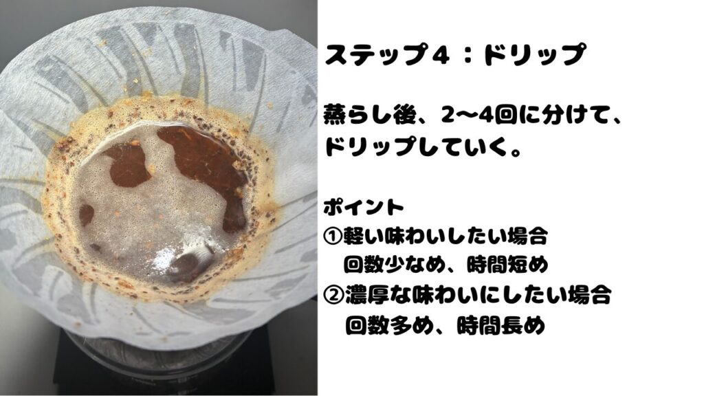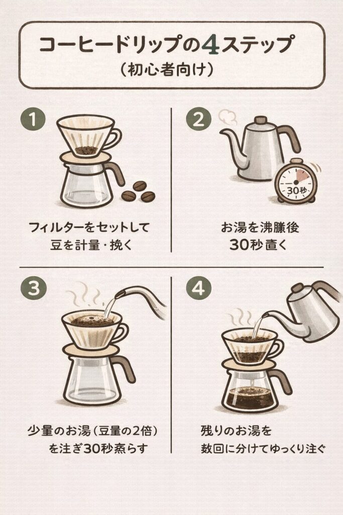 ハンドドリップの流れは4ステップ。
