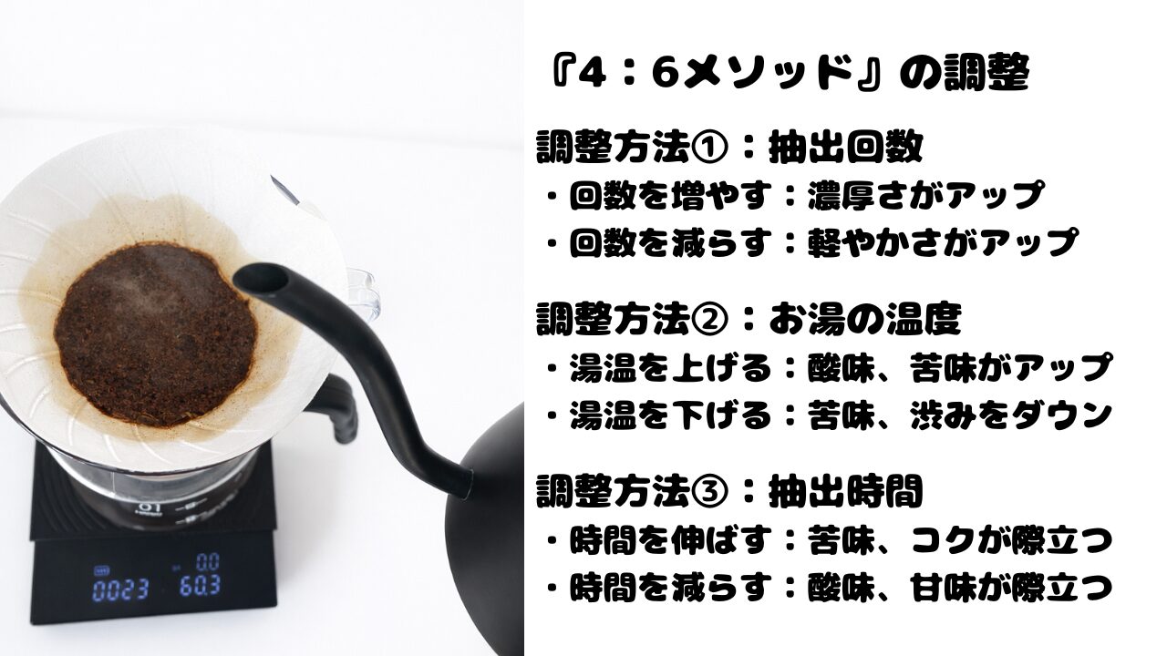 『4:6メソッド』の魅力は、基本の淹れ方をベースに自分の好みに調整ができる点です。