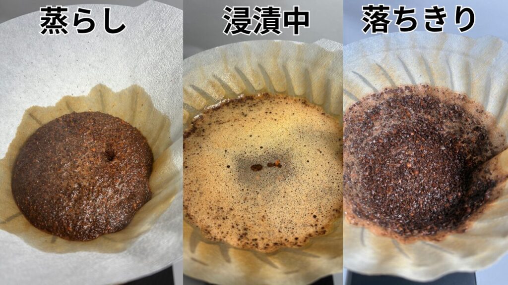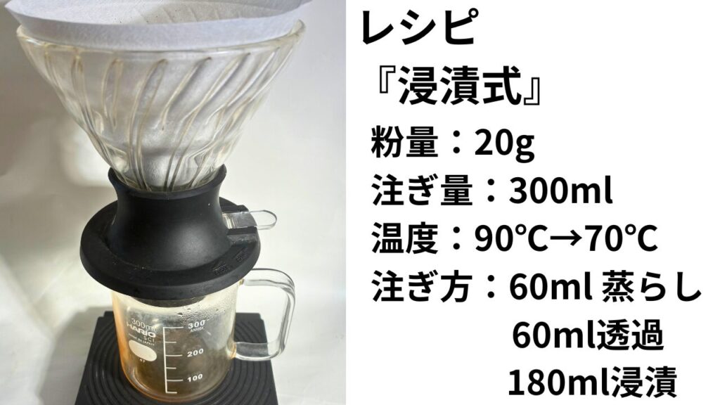 浸漬法で淹れたコーヒーは、4:6メソッドで淹れたコーヒーよりもボディ感が強調された一杯となりました。