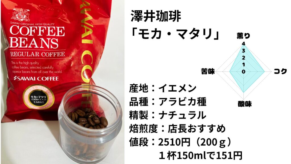 澤井珈琲のモカマタリの価格は200gで2510円。