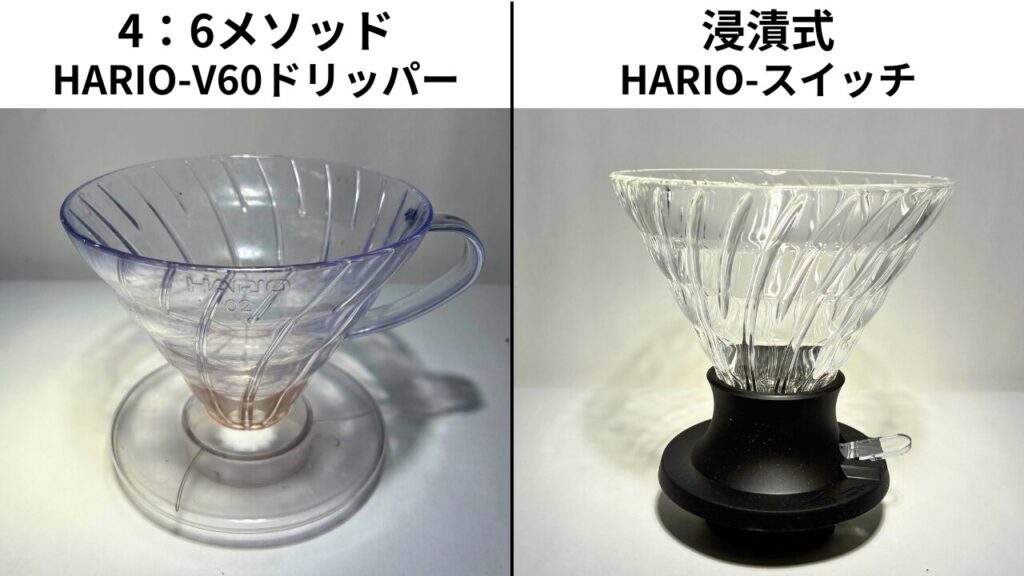 同じ豆を「4:6メソッド」と「浸漬法」の2種類のドリップ手法で飲み比べをしてみました。