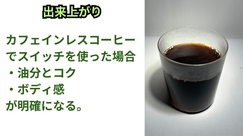 「スイッチ」を使うと、抽出の安定性に加えて、焙煎度や豆の特性によって次のような変化を感じやすくなります。