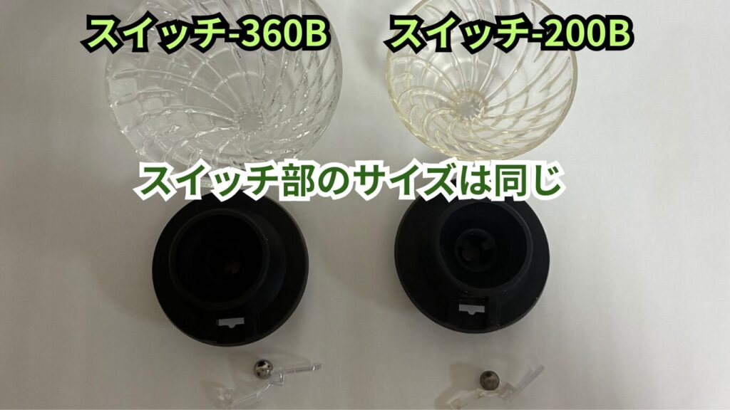 ハリオ「浸漬式ドリッパースイッチ」には、2種類のサイズがあります。
