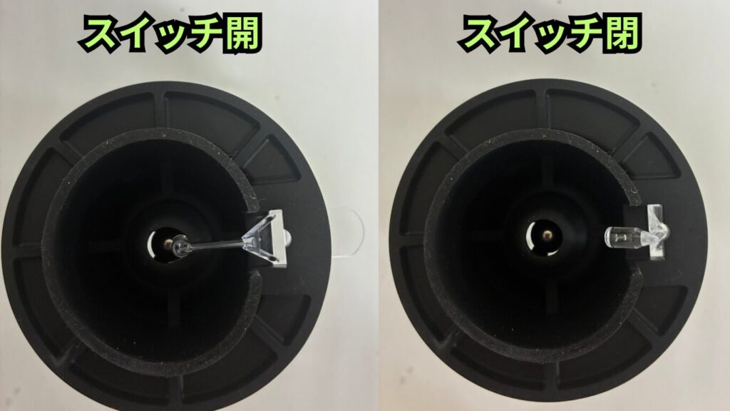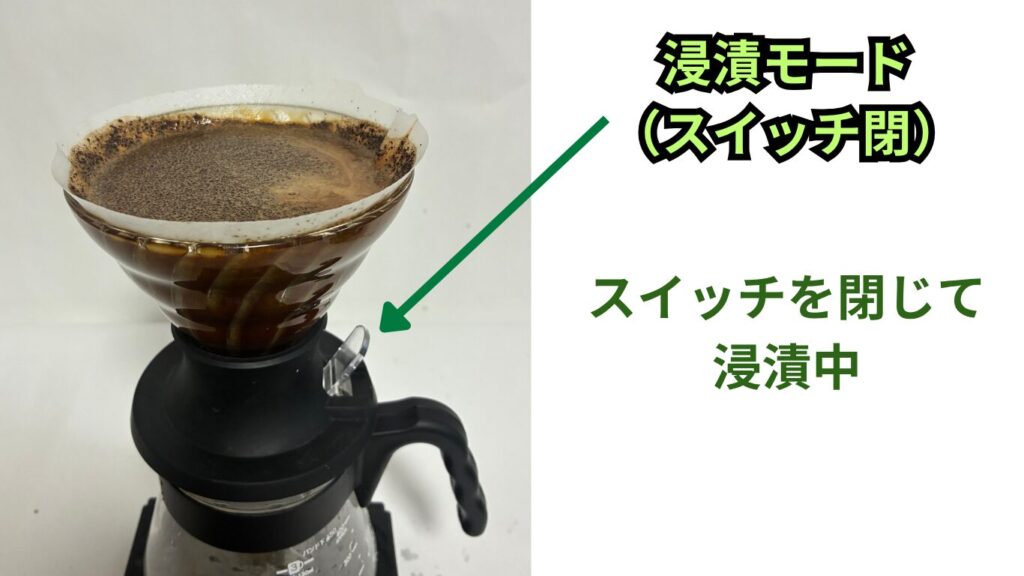 スイッチを外して(上に入れて)、コーヒー豆を浸漬させます。